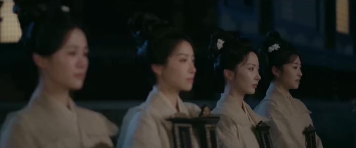Wei Yun’s sisters-in-law join them at night, hoping their pleas could get Emperor Chunde to agree to see them. Not long after the sisters-in-law arrive, their gazes directed towards the back indicate more in support of Wei Yun’s release are arriving.